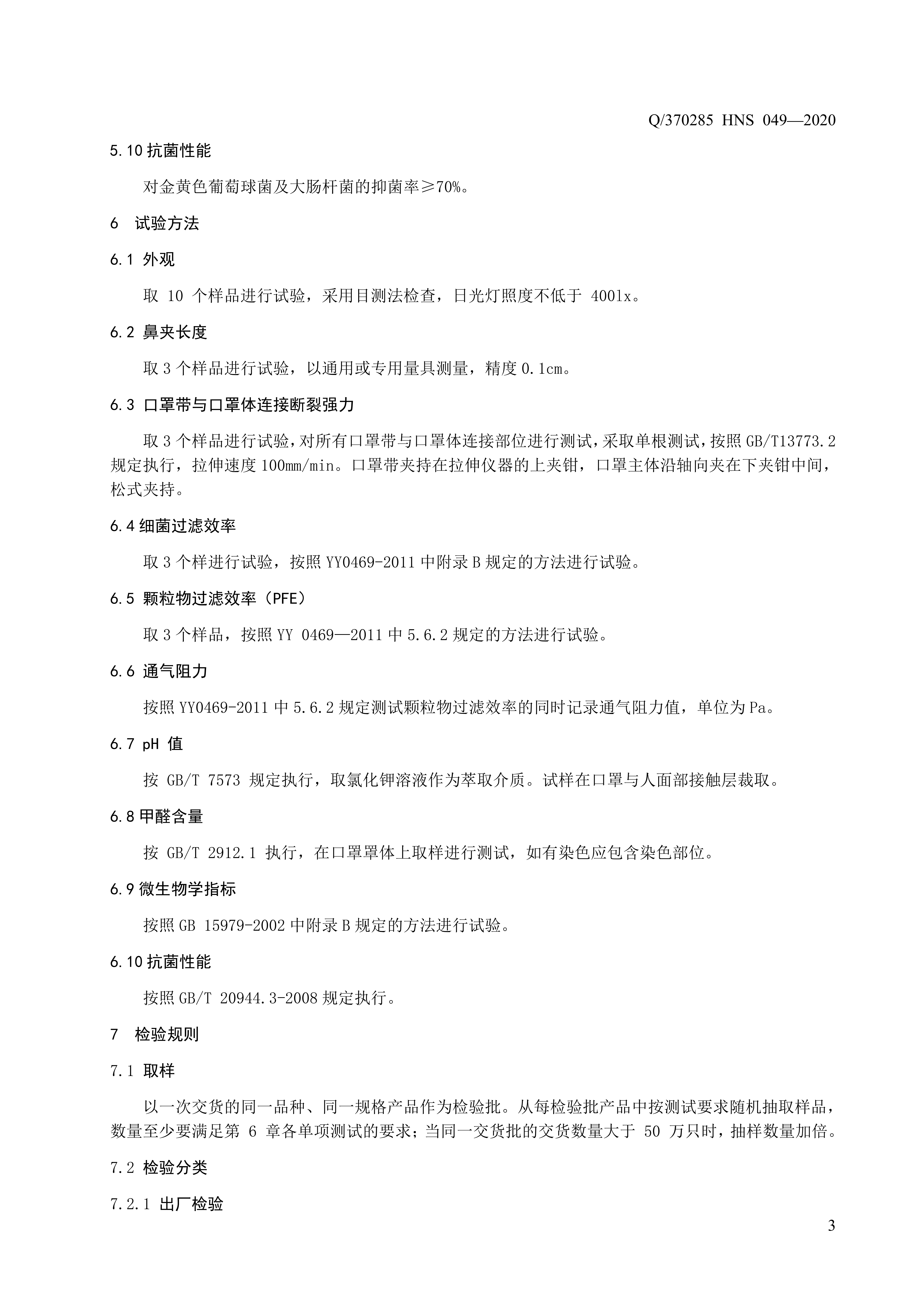 青岛海诺生物工程有限公司企业标准 — 一次性板蓝根口罩